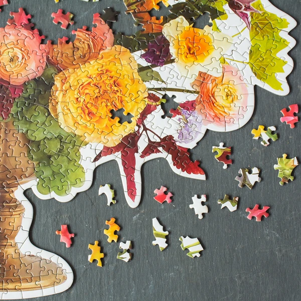 Celebrate your gardening passion indoors with this delightful floral-themed jigsaw puzzle, featuring the signature artwork of Ashley Woodson Bailey. The high-quality puzzle comes with 750 randomly die-cut pieces shaped around a colorful bouquet and promises hours of challenging fun. Also makes a thoughtful gift for the gardener on your list.