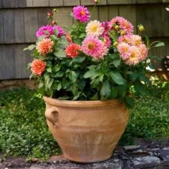 They are marvelous grouped together, since each form seems to flatter every other. Keep from freezing in winter. The Glastraki pot has one drainage hole.