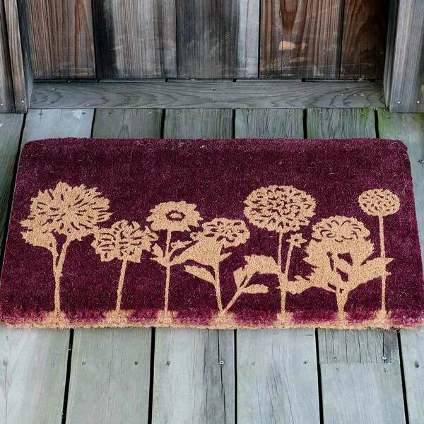 This White Flower Farm-exclusive Coconut fiber outdoor mat comes to us from The Colonial Williamsburg Foundation, and features spirit-boosting Dahlias to elicit smiles on even the greyest of days. The botanical motif on this sturdy handwoven doormat is inspired by designs in historical collections at the Foundation, and is hand-stenciled in eco-friendly dyes. The mat cleans easily with a quick shake, sweeping, or vacuuming. We recommend placing it under a sheltered area.
