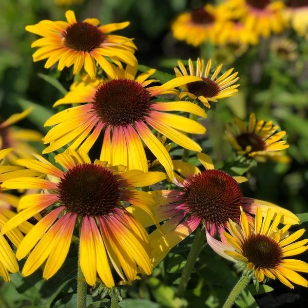 A rainbow of colors radiates from the blossoms of this compact, long-blooming Coneflower. A sibling to ‘Rainbow Marcella,’ this beauty boasts sunny yellow ray petals suffused with bright pink and surrounding a chestnut-red cone. These flowers are delightful in the late summer and autumn garden, and a gift for pollinators and winged friends. ‘Ech391’ 30,410