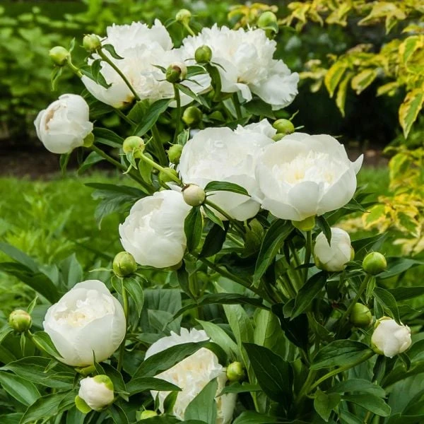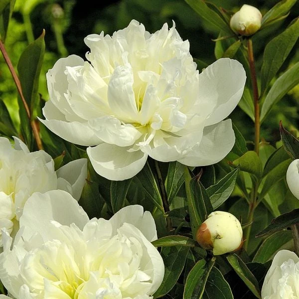 A century-and-a-half after its introduction, ‘Duchesse de Nemours’ remains an aristocrat in the field. Strong stems display her cupped, bouquet-ready, medium to large, fragrant, double white blossoms. A touch of yellow at the base of the dense, ruffled inner petals adds a luminous glow. ‘Duchesse de Nemours’ is a winner of an Award of Garden Merit from the Royal Horticultural Society. Early.