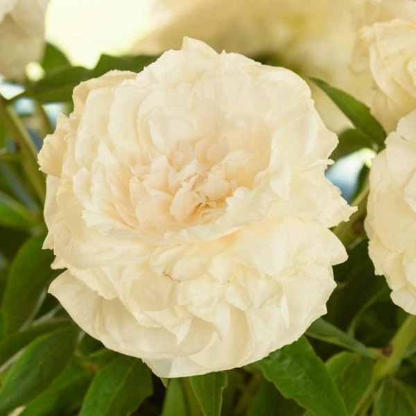 A must-have for collectors and purists alike, Peony ‘Mother’s Choice,’ a winner of the American Peony Society Gold Medal, offers richly fragrant double blooms that are ivory in color and can carry a subtle blush and traces of dark pink on their margins. The classically formed, Rose-like flowers are generously sized, and they arrive on sturdy stems that almost never need staking. Midseason.