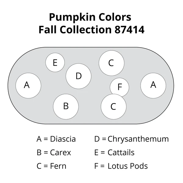 Warm up a porch or patio for autumn with the vivid orange hues of our exclusive Pumpkin Colors Collection, which combines three perennials, one annual, and two different dried botanicals for a seasonal show. The multitudinous Daisy-like blossoms of perennial Chrysanthemum ‘Pumpkin Igloo’ feature orange petals with bright yellow centers. They blend beautifully with the small but plentiful trumpet-shaped flowers of annual Diascia Piccadillyâ„¢ Dark Orange, and the cinnamon-orange fronds and red highlights of the perennial Autumn Fern Dryopteris erythrosora ‘Brilliance.’ Glimmers of gold are provided by the green- and yellow-variegated blades of perennial Ornamental Grass Carex oshimensis ‘Eversheen.’ Adding interest are the tall spikes of dried cattails and the distinctive round seed heads of dried Lotus pods, both in a rich suede brown. Welcome the autumn season with this colorful container mix, and surround it with pumpkins, cabbages, and other fall favorites. As the fall season nears its end, the perennials may be transplanted into the garden where they will return year after year. 6 plants total and stems of 2 dried elements, quantities of each are listed below.