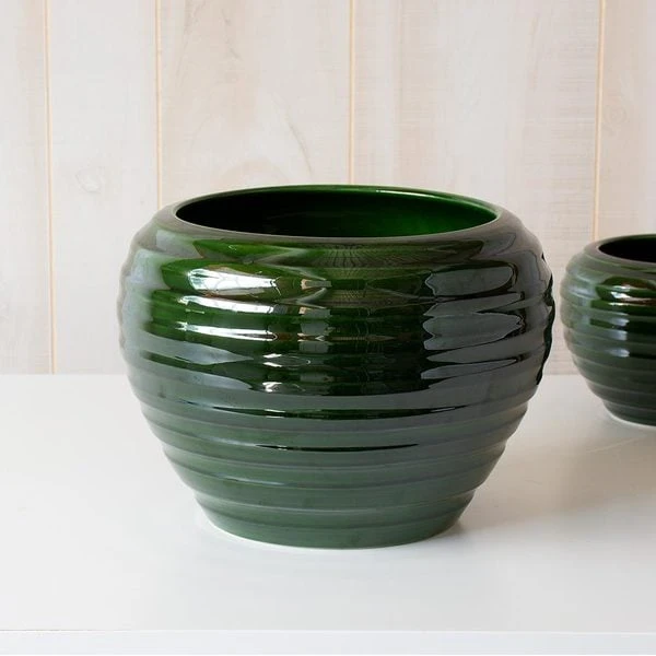 Hand-thrown by skilled artisans in Tuscany using premium clay and glazed a rich, glossy hunter green, this stunning cachepot conjures summer days beside the mirror-still waters of an Italian lake. The Spring Lake Cachepot’s ribbed texture adds subtle interest, like a quiet ripple across the water, without distracting from the foliage it frames. A superb gift.