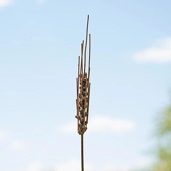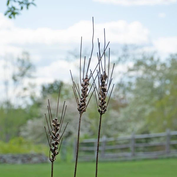 An ear of Wheat is reimagined as a whimsical work of art in this recycled metal garden sculpture which is cut, shaped, welded, and painted by hand. Place it in a bed for interest, or press it into service as a plant stake. Expect variations among each artisan-crafted ear of Wheat.